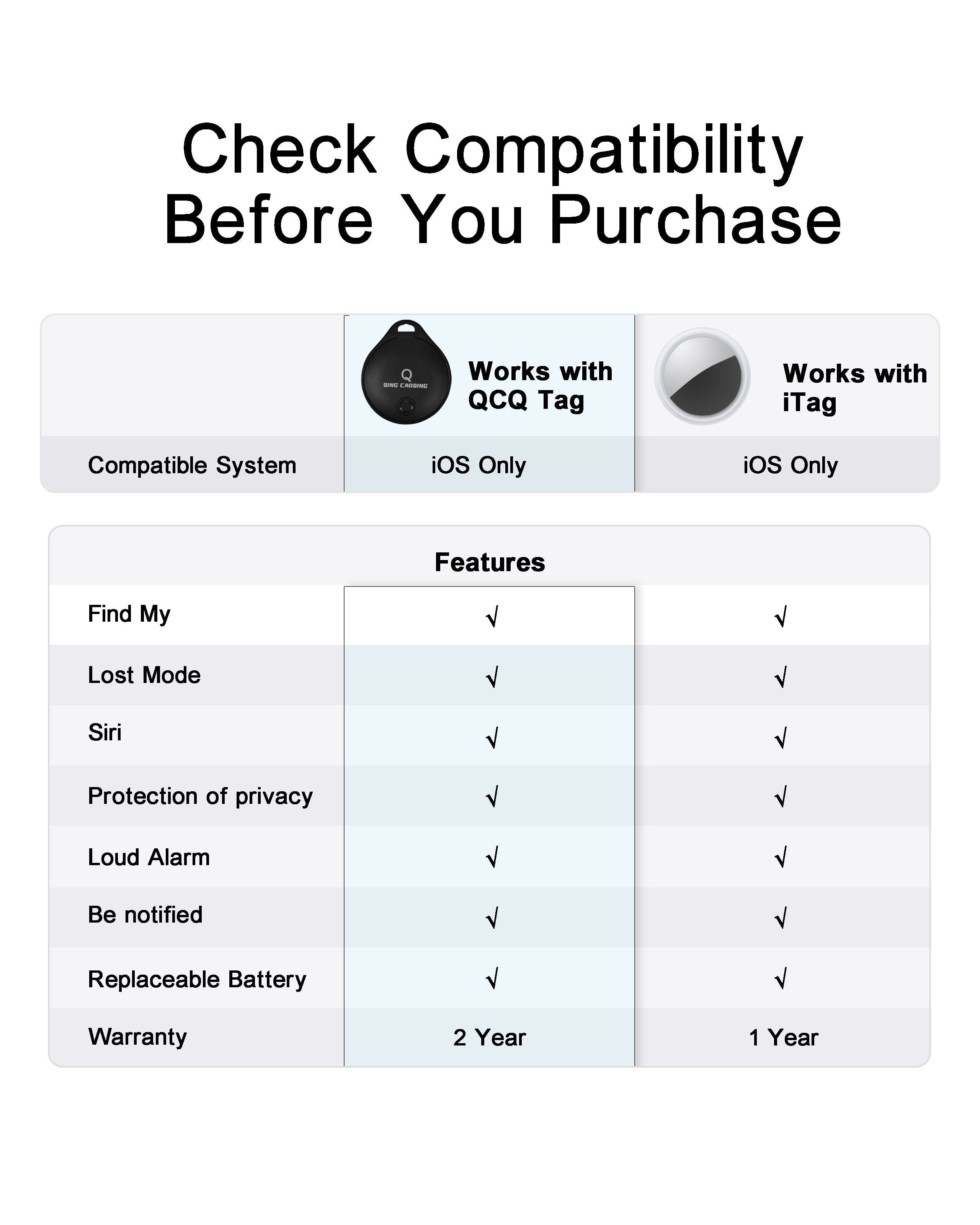 QING CAOQING Air Tags 2 Pack with Find My App(iOS ONLY)